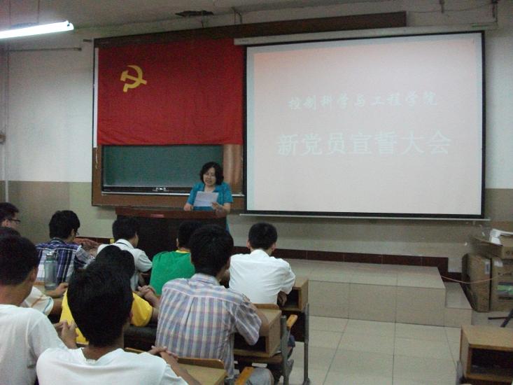 大会在雄壮的《国歌》中开始,在学院辛帅老师的领誓下,118名新党员面向鲜红的党旗举起右手庄严宣誓。随后,王文荣同学代表新党员发言,表示今后一定要向老党员学习,不仅从组织上入党,更要从思想上、行动上入党,争取做一名合格的党员。杨茜同学代表老党员发言,对新党员表示衷心的祝贺和欢迎,表示今后要更加严格地要求自己,为新党员起到表率作用,还代表老党员对新党员提出了一些希望和要求。陈祥同学代表入党积极分子发言,表示在今后要以党员标准更加严格地要求自己,更加主动地学习党的理论知识,争取早日加入到党组织中来。