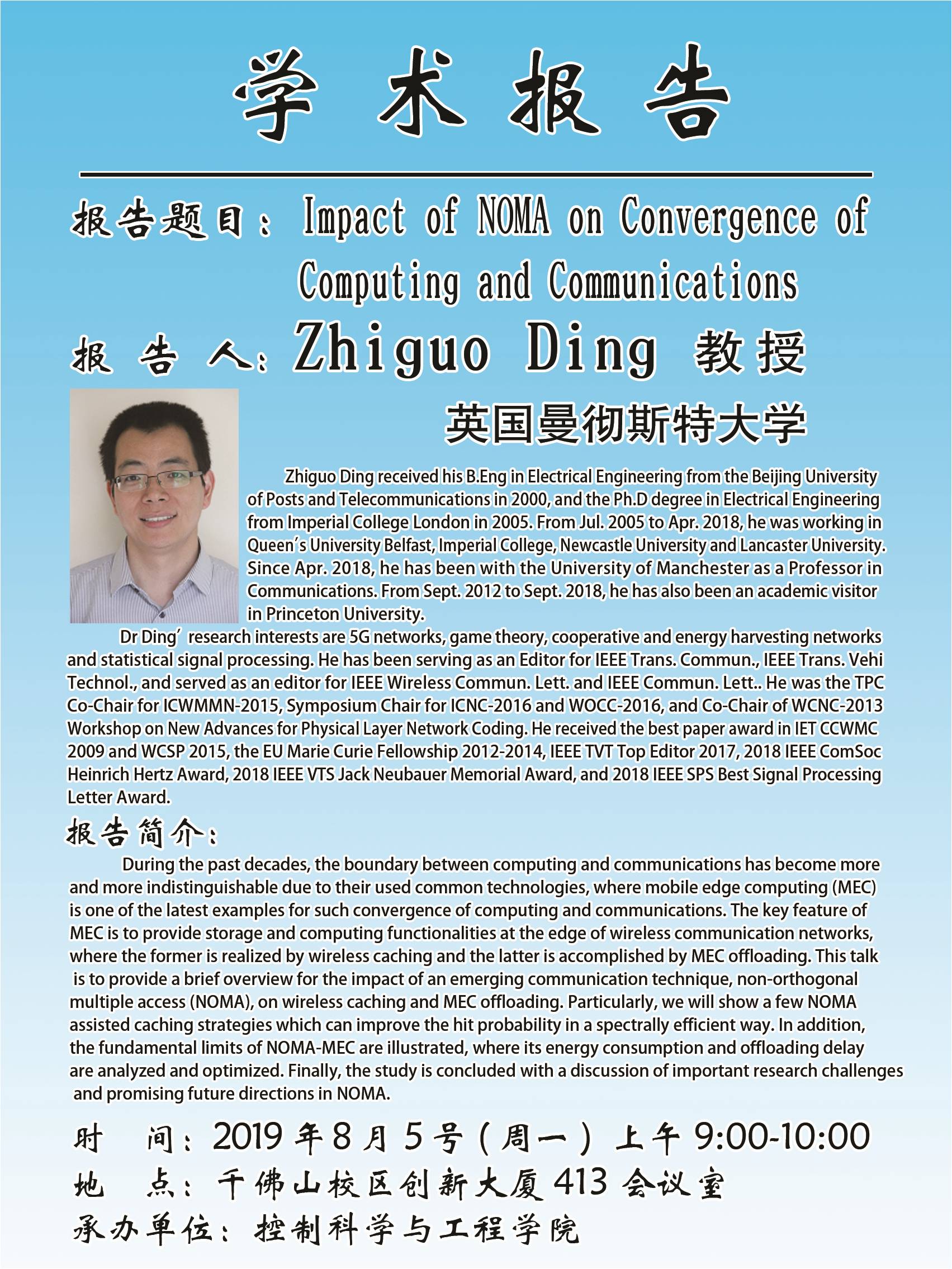 下一条:学术报告—Embracing Non-Orthogonal Multiple Access in Future Wireless Networks